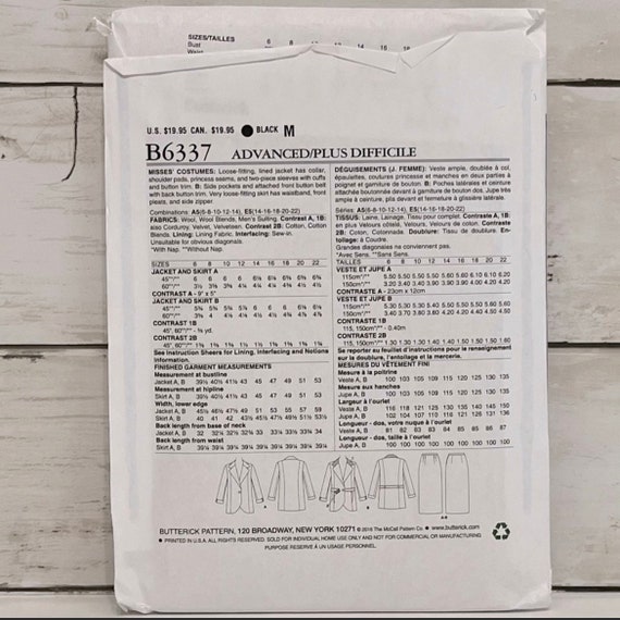 Butterick B6337 Costume Sewing Patterns Plus Size Uncut Etsy