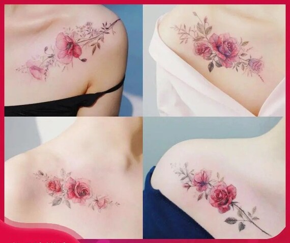 1 Set Of 16 Temporary Flower Tattoos Girly Tattoos Pink Etsy Uk