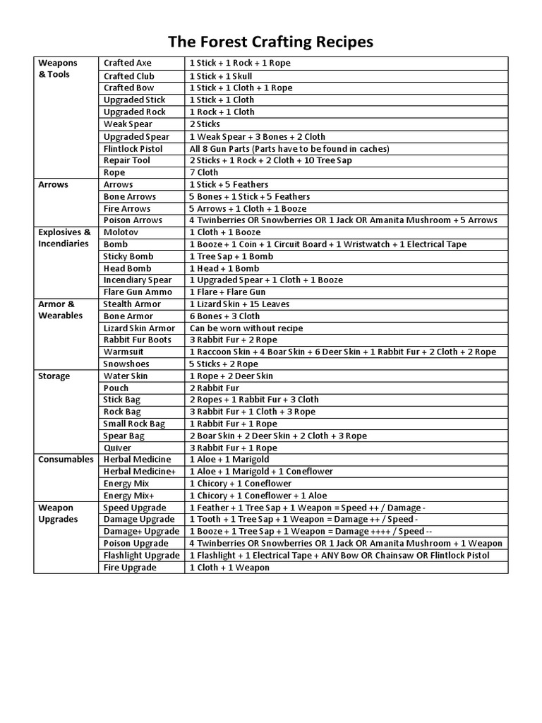 The Forest All Crafting Recipes Updated October 2023 Qnnit